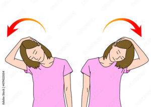 - 右手で頭を持ち、ゆっくりと右に倒す。
