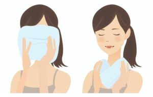 ② 蒸しタオルで首・目を温める